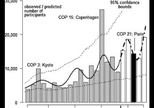 A chart modeling past and project climate meeting participation